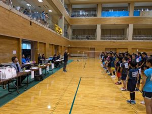 初めてシングルス戦とダブルス戦が間隔を空けた日程で開催されました。優勝メダルやシャトルを贈呈しました。
